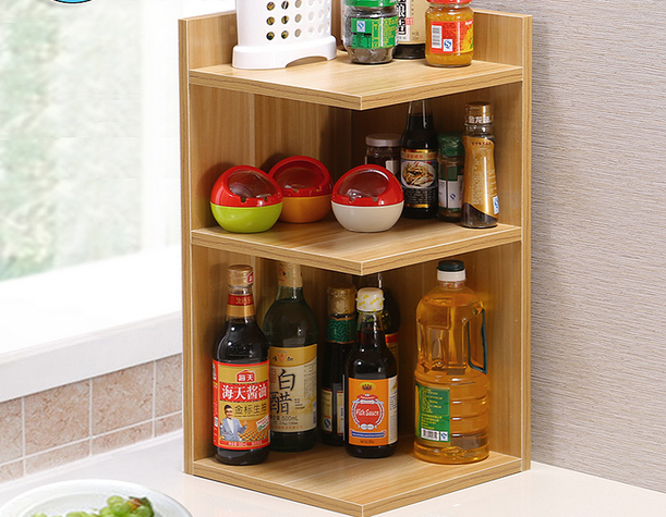 厨房角落收纳,安全顶部栏板,加高设计,再多的瓶瓶罐罐放在一起,轻松拿取,也不会碰落哦!上下分层的空间设计,合理分层布局,分类收纳,不用占用过多的生活空间,满足更多储物,轻松享生活,还原你一个整洁的厨房!