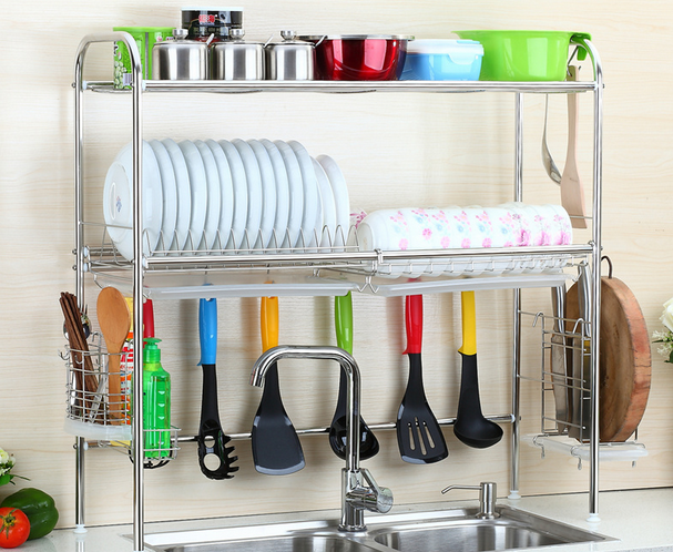采用304不锈钢制作,无毒无铅,给您与家人安心使用。带水盘筷笼、加大三格筷子篓、带接水盘刀架砧板架,全接水式,放哪都是沥水神器。水槽架配备调节橡胶螺丝底脚,可调节平衡,保护台面不刮伤。各种尺寸都有,满足您的各种需求!